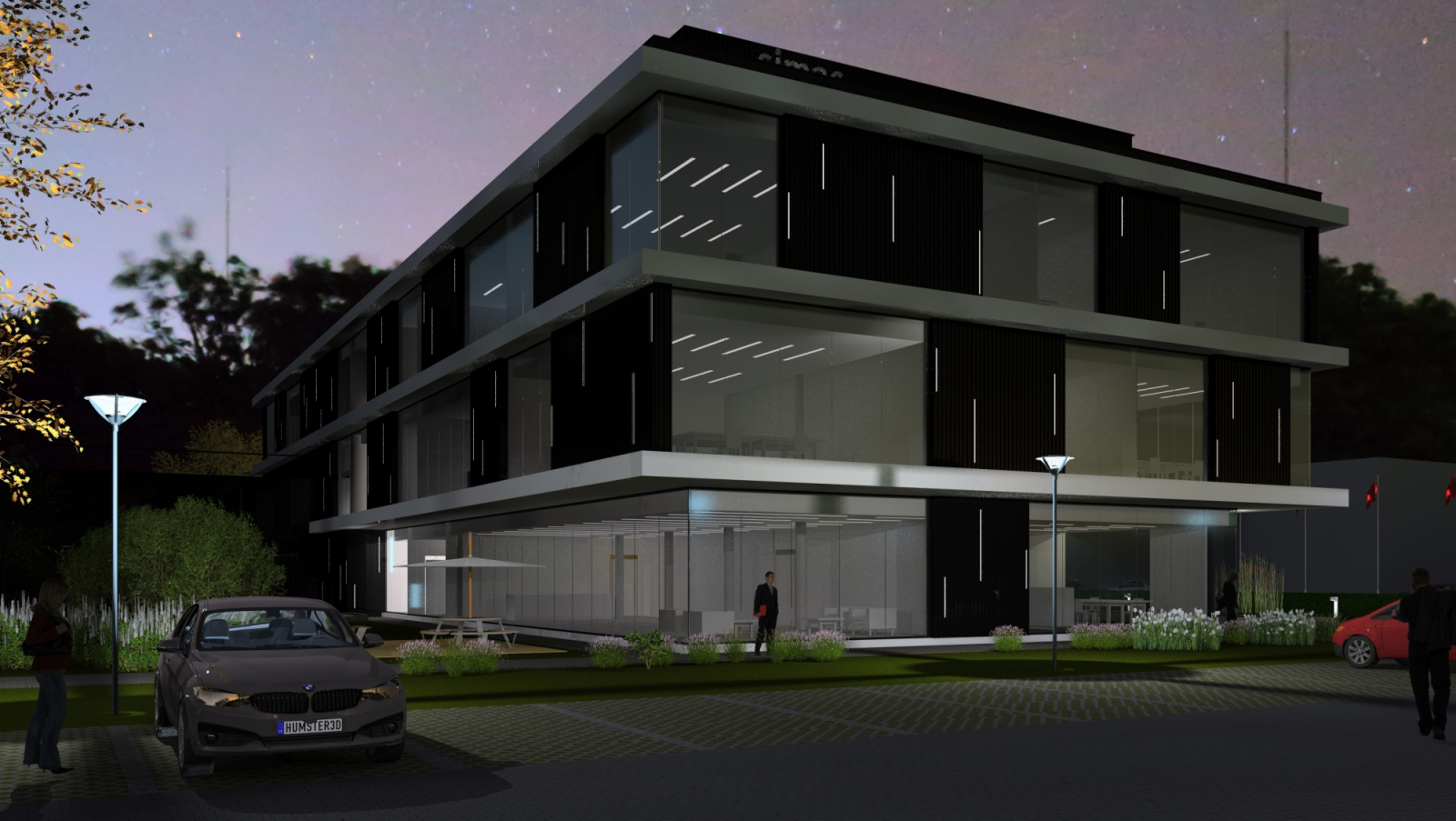 Wedstrijdontwerp voor Simac NV, op de bestaande site in het technologiepark van Haasrode. Het nieuwbouwproject voorziet in een ‘bijna-energie-neutraal’ kantoorgebouw van 3000m² en 500m² magazijnruimte.